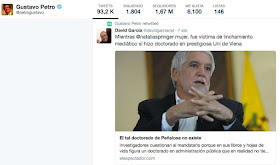 Y de los tantos trinos de Petro contra Peñalosa por la inexistencia del Doctorado del actual Alcalde, destaco estos: