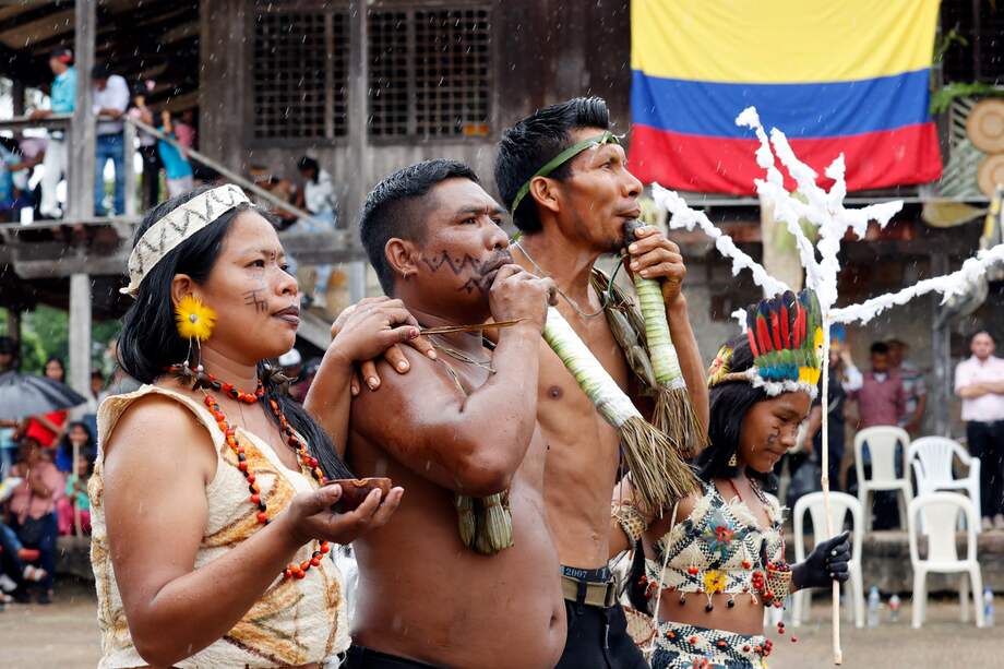 En este caso, en la conmemoración de la creación de Resguardo Predio Putumayo, instaurado en 1988, indígenas de diversos pueblos, entre ellos los Uitoto, Bora, Ocaira y Muinane, recibieron a la representación del gobierno con cantos y trajes típicos en una cancha cercana a la hacienda que perteneció a Julio Arana, ubicada en la triple frontera entre Colombia, Brasil y Perú.