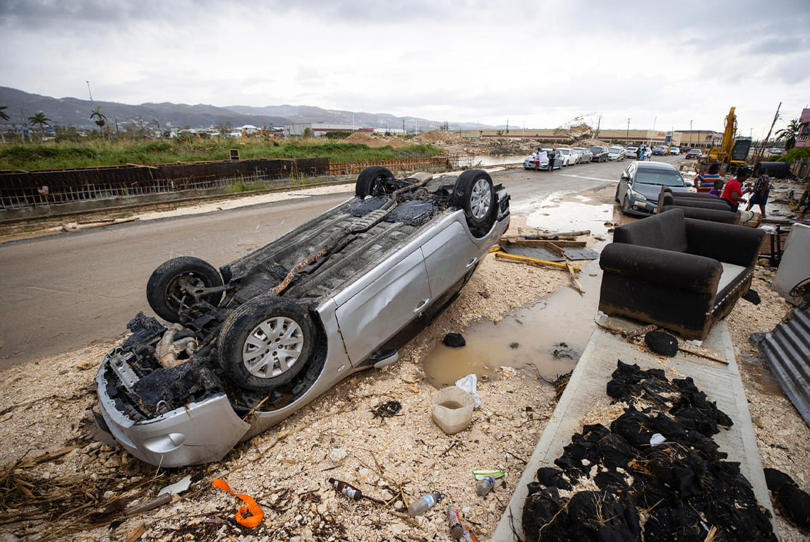 Un vehículo yace volcado tras el paso del huracán Melissa en MontegoBay, Jamaica. Considerado el huracán atlántico más destructivo en casi un siglo, dejó al menos 30 muertos en Haití, 19 en Jamaica y graves daños en Cuba. (EFE)