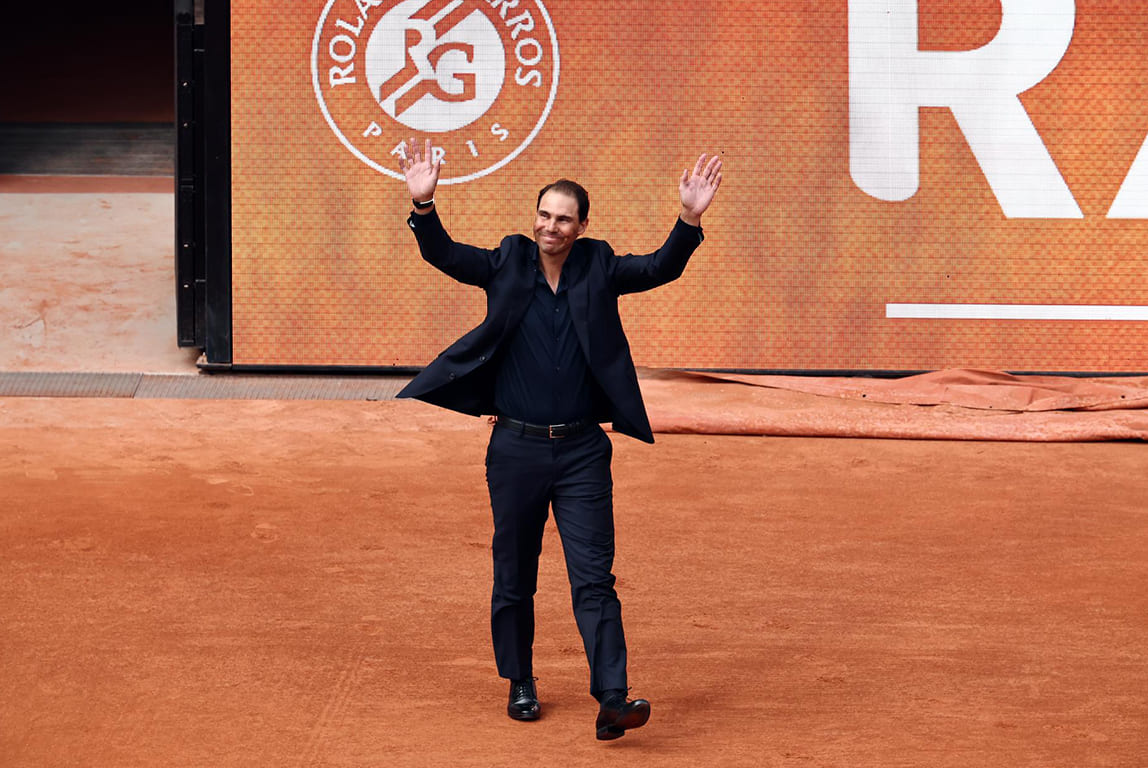 El tenista español Rafael Nadal recibe una ovación del público durante el homenaje definitivo que le rindió Roland Garros el 25 de mayo de 2025 en la pista Philippe-Chatrier, en reconocimiento a su histórica trayectoria en el torneo. (EFE)