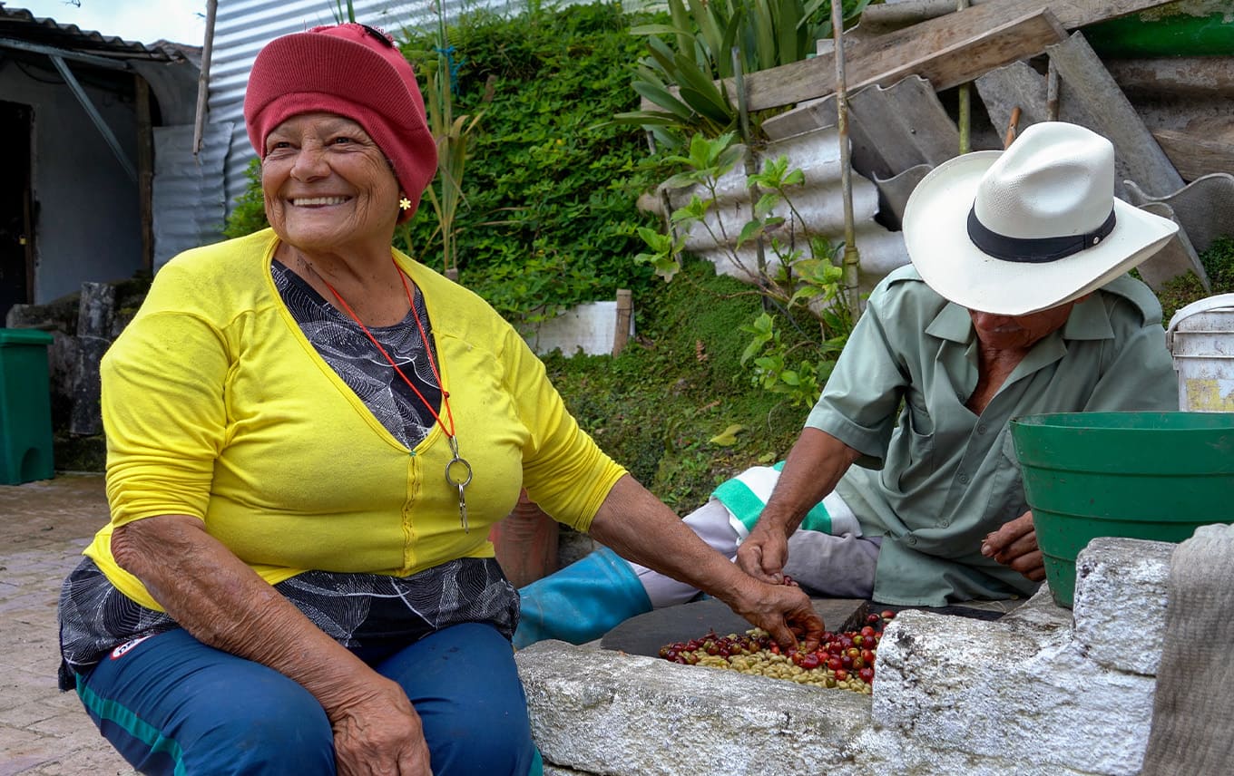 En ese patio hay algunas matas de café, el principal producto de la región. Y pese a que ya no jornalean, varios ancianos deciden pasar sus días en el oficio con el que se ganaron la vida. De manera metódica, arrancan las pequeñas pepas de café rojizas, las ponen sobre una manta, una a una, seleccionándolas, para que se sequen bajo el sol.