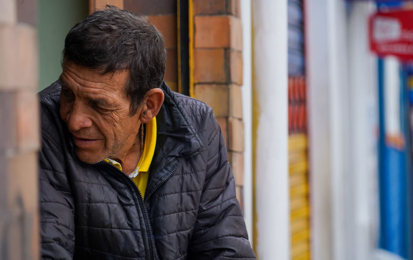 Estuvo varios días durmiendo en un descampado a las afueras del municipio, recibiendo la ayuda de algunas personas que se solidarizaban, pero, sin poder hacer mucho más, le ofrecían un pedazo de pan o un tinto para calentar el cuerpo luego de las largas horas de lluvia. Hasta que llegó una mujer, Jenny Andrea –a quien ve hoy como si fuera una hija– y decidió ayudarlo. Después de recibirlo en su casa, consiguió que le dieran una habitación en el San Vicente de Paul, donde vive desde finales de 2023.