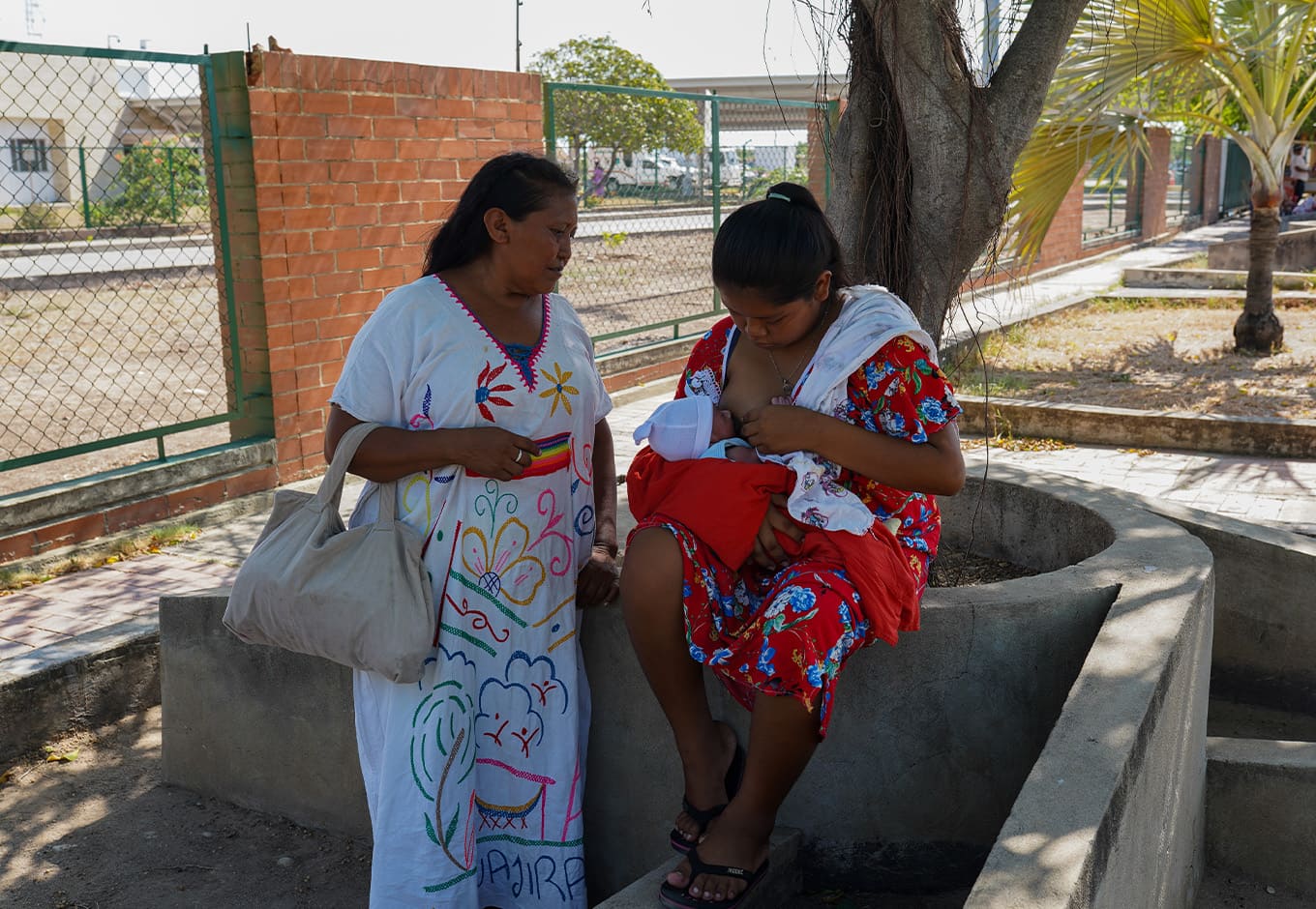 “Allá (Uribia) no hay muchos médicos y solo buscan calmar el dolor, no se hacen operaciones y para los bebés no hay incubadoras. Por eso no quiero que Katiuska se vaya y así se lo dije, llevarse al bebé es riesgoso, si le vuelve a dar fiebre, ¿para dónde agarran?, para llegar hasta aquí hay mucho trabajo”, indica Iria afuera del hospital San José de Maicao.