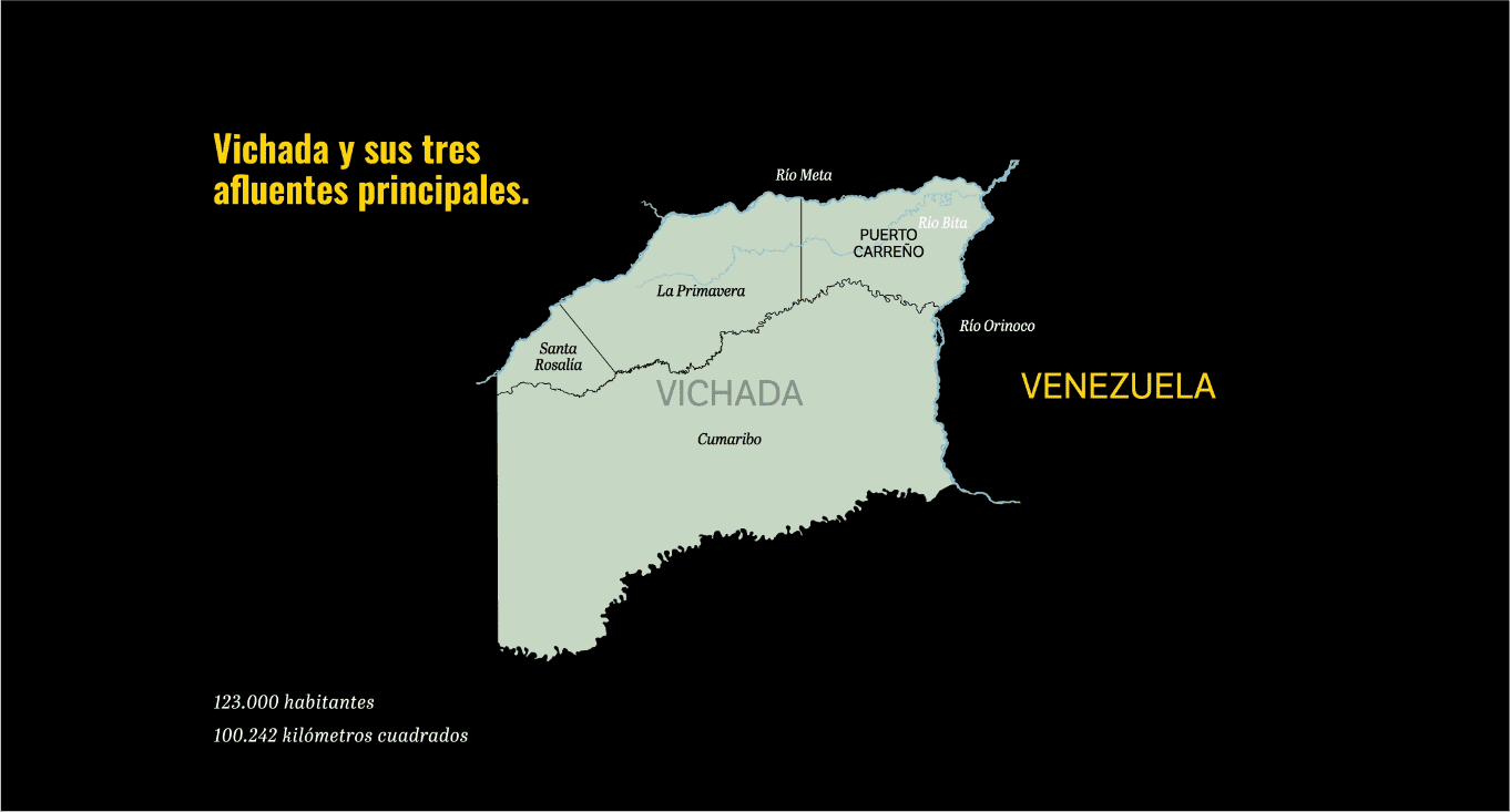 Vichada son 100.242 kilómetros cuadrados de llanuras, ríos, bosques, unos 120.000 habitantes y cuatro municipios, entre estos el más grande de Colombia, Cumaribo. Es un territorio con superficie similar a la de Portugal o el doble de Suiza. En cada rincón, dicen los locales, hay una muestra del aislamiento en el que han vivido siempre y, oficialmente, desde hace 34 años, cuando pasaron de ser comisaría a departamento con la constituyente de 1991.